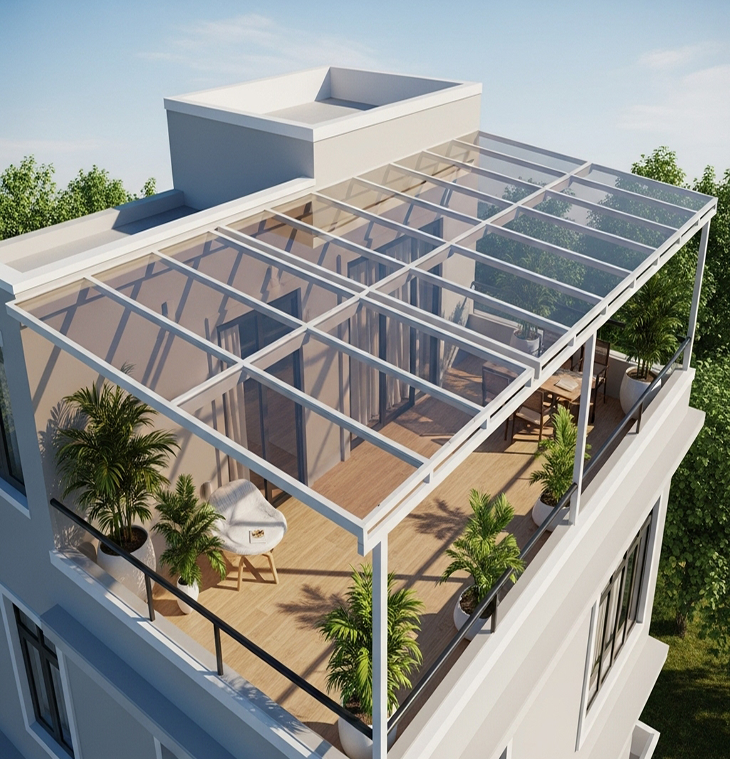 Mái Che Sân Thượng Hiện Đại - Bền Đẹp, Chống Nắng Mưa Tối Ưu